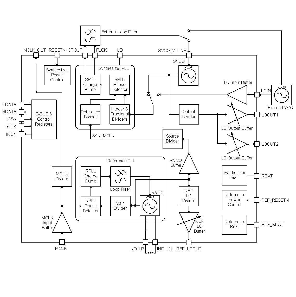 - 16- and 24-bit fractional-N PLL modes
