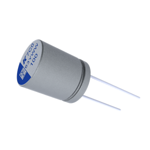 The A7C0 combines the strengths of conductive polymer technology with a traditional liquid electrolyte. Its radial construction features a cylindrical aluminum case and a high-quality rubber seal, while the advanced PEDOT/PSS polymer system achieves very low ESR and high ripple current capabilities. This hybrid polymer-liquid architecture enables intrinsic self-healing behavior, giving the capacitor long-term stability under severe thermal and electrical conditions.